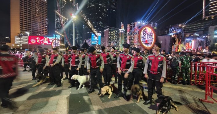 Jakarta — Korps Sabhara mengerahkan satuan K-9 untuk memperkuat pengamanan malam pergantian Tahun Baru di kawasan Bundaran Hotel Indonesia, Rabu (31/12/2025) malam. Pengamanan dilakukan guna memastikan situasi tetap aman dan kondusif di tengah tingginya aktivitas masyarakat.
