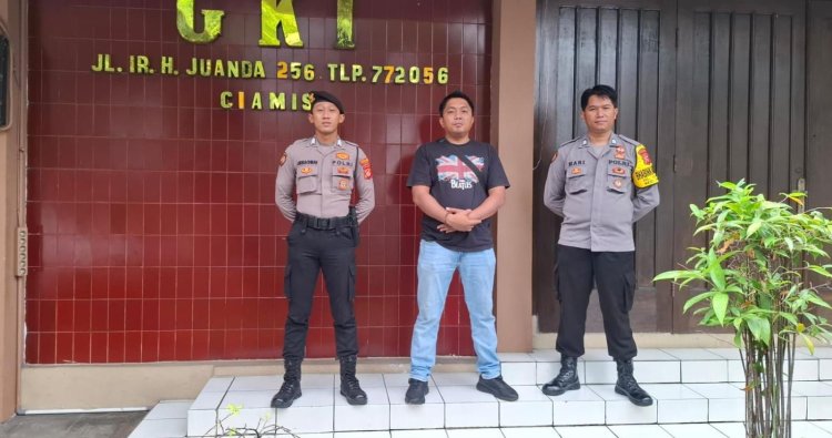 Salah satunya pengamanan yang dilakukan Personel Polsek Ciamis Polres Ciamis Polda Jabar saat pelaksanaan Kebaktian Minggu Pagi di sekitar Gereja Kristen Indonesia Ciamis. Personel bersiaga di sekitar Gereja Kristen Indonesia yang berada di Jl. Ir. H. Juanda No.090, Ciamis, Kabupaten Ciamis, Jawa Barat, Minggu (2/11/2025).