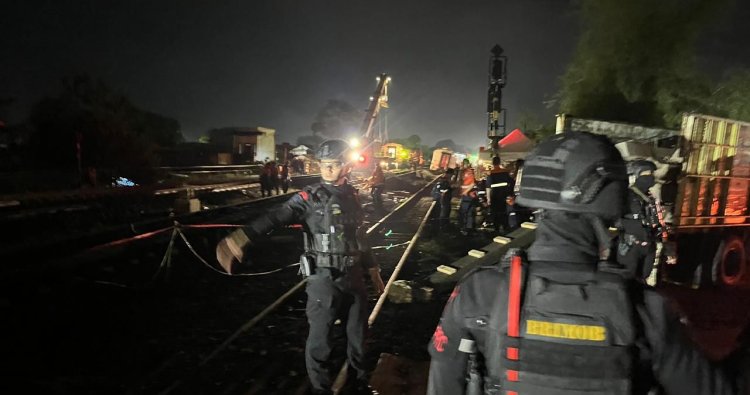 Personel Brimob tiba di lokasi sekitar pukul 20.15 WIB dan langsung berkoordinasi dengan pihak PT Kereta Api Indonesia (KAI), kepolisian setempat, serta instansi terkait lainnya. Mereka kemudian melakukan pengaturan arus lalu lintas di sekitar lintasan yang terdampak akibat dua gerbong bagian belakang kereta yang anjlok.