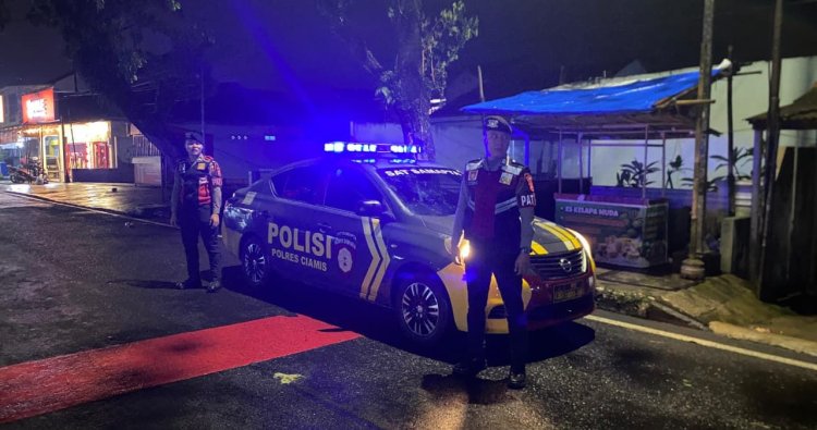 CIAMIS ~ Unit Patroli Sat Samapta Polres Ciamis Polda Jabar melaksanakan Patroli Biru dan stasioner di wilayah rawan tindak kriminalitas dan balapan liar di Kabupaten Ciamis. Patroli ini dilaksanakan menjelang waktu subuh di kawasan Jalan Jenderal Sudirman Ciamis, Ciamis, Kabupaten Ciamis, Jawa Barat, Selasa (10/2/2026), dini hari.