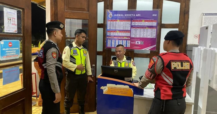 CIAMIS ~ Personel Satuan Samapta Polres Ciamis Polda Jabar melaksanakan Patroli Dialogis dalam rangka cipta kondisi antisipasi gangguan kamtibmas. Patroli kali ini dengan menyambangi Stasiun Kereta Api Ciamis, Ciamis, Kabupaten Ciamis, Jawa Barat, Sabtu, 21 Februari 2026, malam.