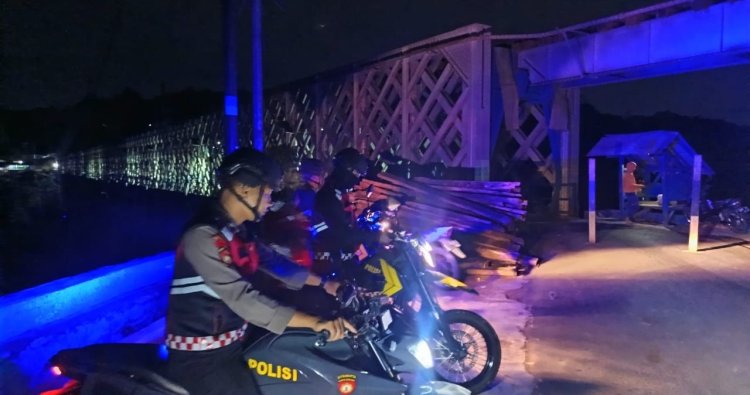 Para personel hadir berpatroli di kawasan pusat kota dan objek vital serta keramaian masyarakat di menggunakan kendaraan dinas Polri Roda 2. Sebanyak 4 unit dikerahkan Roda 2 untuk mendatangi kawasan Jembatan Cirahong, Kabupaten Ciamis, Jawa Barat, Minggu, 28 Desember 2025, malam.