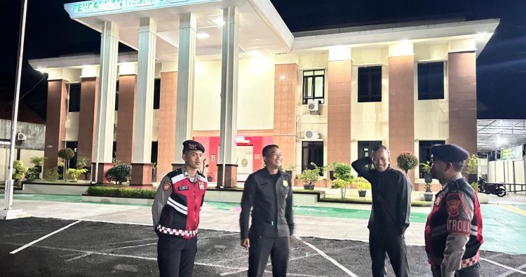 CIAMIS ~ Personel Satuan Samapta Polres Ciamis Polda Jabar melaksanakan patroli kamtibmas ke kawasan objek vital seperti perkantoran di Kabupaten Ciamis. Kegiatan ini sekaligus untuk berkoordinasi dan pembinaan ke satuan keamanan (Satpam) perkantoran. Seperti ini dilakukan ke Anggota Satpam Kantor Pengadilan Negeri Ciamis, Kecamatan Ciamis, Kabupaten Ciamis, Jawa Barat, Jumat (20/2/2026), dini hari.