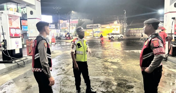CIAMIS ~ Pasukan Patroli Roda 4 Satuan Samapta Polres Ciamis Polda Jabar melakukan Patroli Dialogis ke area publik dan objek vital dalam rangka cipta kondisi antisipasi gangguan kamtibmas. Patroli kali ini menyambangi kawasan SPBU Nagrak Ciamis, Kabupaten Ciamis, Jawa Barat, Selasa, 20 Januari 2026, malam.