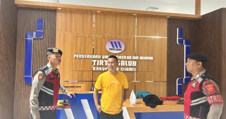 CIAMIS ~ Satuan Samapta Polres Ciamis Polda Jabar mendatangi kantor pelayanan publik dan objek vital dalam rangka cipta kondisi antisipasi gangguan kamtibmas saat waktu malam. Patroli kali ini dengan menyambangi Kantor PDAM Tirta Galuh, Ciamis, Kabupaten Ciamis, Jawa Barat, Kamis (5/2/2026), dini hari.