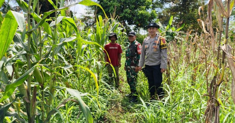 Ketahanan Pangan, Polsek Cikoneng Polres Ciamis Pantau Pertanian Jagung Poktan Sriwaringin 1
