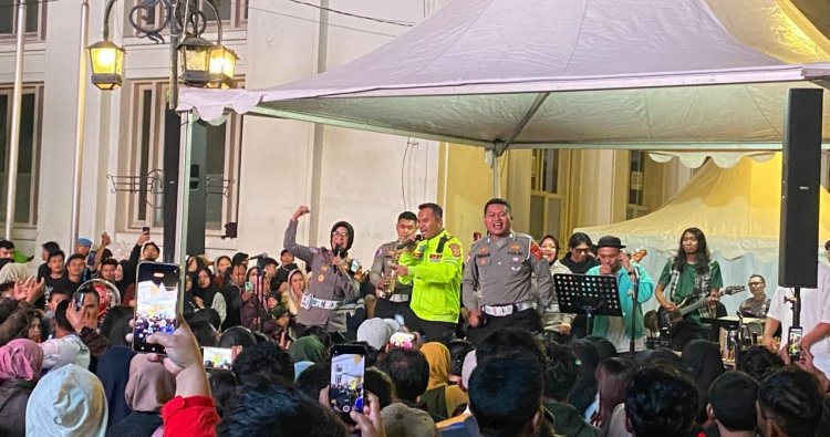 Menariknya, panggung musik ini menghadirkan penampilan dari anggota Direktorat Lalu Lintas (Ditlantas) Polda Jabar yang menunjukkan bakat seni mereka. Penampilan tersebut dipimpin langsung oleh duet AKBP Endang dan AKBP Eti, yang berhasil menciptakan suasana hangat dan meriah meski tanpa hingar-bingar kembang api.