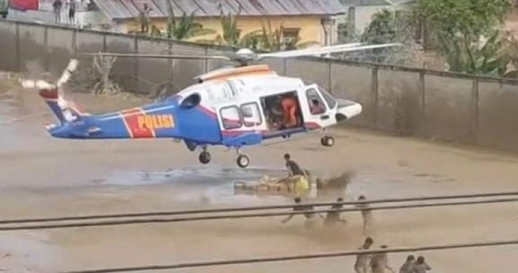 Meski Dengan Risiko Pendaratan, Helikopter Poludara Baharkam Polri Berhasil Dropping Logistik Bantuan ke Aceh Tamiang