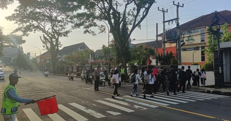 Personel melakukan pelayanan masyarakat mengatur lalu lintas serta membantu menyebrang warga. Ini dilakukan dalam rangka untuk memberika kenyamanan pengguna jalan serta meminimalisir angka fatalitas kecelakaan lalu lintas.