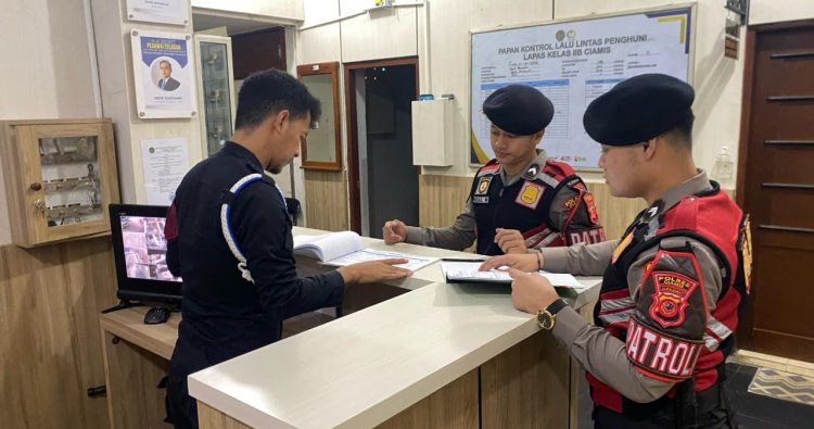CIAMIS ~ Personel Satuan Samapta Polres Ciamis Polda Jabar mendatangi kantor pelayanan publik dan objek vital dalam rangka cipta kondisi antisipasi gangguan kamtibmas saat malam hari. Ini dilakukan untuk memberikan kenyamanan dan keamanan masyarakat. Dimana patroli kali ini dengan menyambangi Lapas Kelas II B Ciamis, Jalan Ir. H. Juanda Ciamis, Kabupaten Ciamis, Jawa Barat, Senin, 9 Februari 2026, malam.