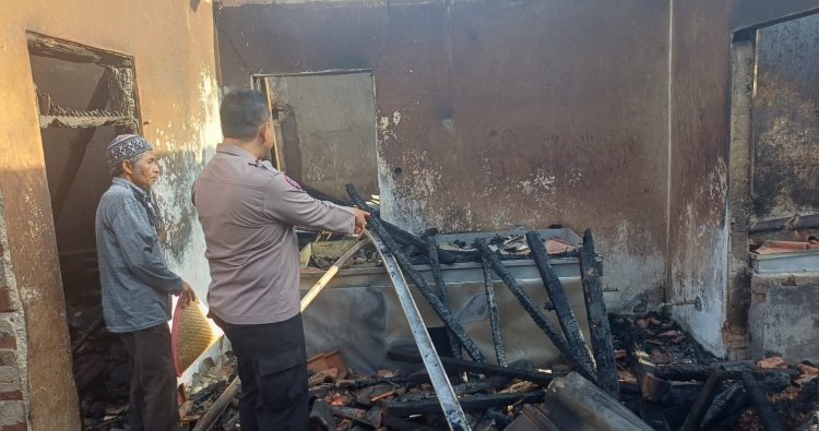 Personel Polsek Ciamis Polres Ciamis Polda Jawa Barat mendatangi lokasi kejadian kebakaran sebuah rjmah warga di wilayah Desa Gunungsari. Lokasi kebakaran ini berada di Dusun cikatomas RT 11 RW 03, Desa Gunungsari, Kecamatan Sadananya, Kabupaten Ciamis, Jawa Barat, Selasa (6/1/2026) dini hari.