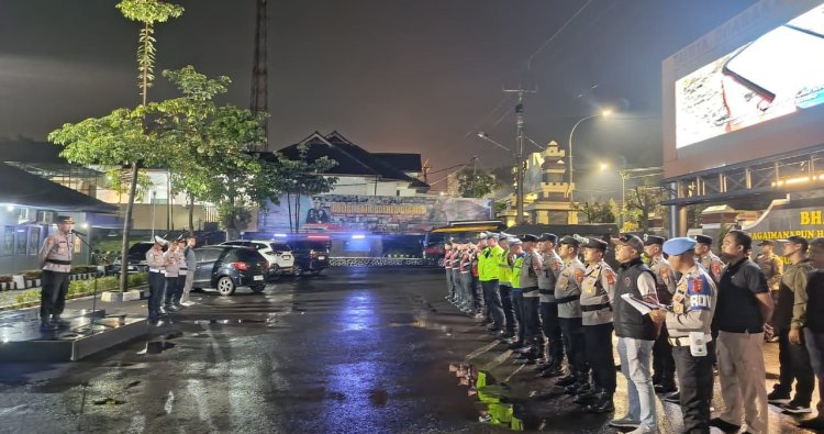 CIAMIS ~ Polres Ciamis Polda Jabar kembali mengumpulkan para personel untuk melakukan patroli dalam rangka penanganan gangguan kamtibmas pasca momen Akhir Tahun 2025 atau Tahun Baru 2026. Mereka dikumpulkan untuk diberikan arahan sebelum pelaksanaan tugas dilapangan memberikan kenyamanan untuk masyarakat. Terlihat para personel Polri berbaris rapih dan tertib di halaman Apel Makopolres Ciamis, Jalan Jenderal Sudirman No.271, Sindangrasa, Ciamis, Kabupaten Ciamis, Jawa Barat, Minggu, 4 Januari 2026, malam.
