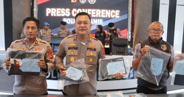 Ciamis - Polres Ciamis kembali menunjukkan kesigapan dan komitmennya dalam menegakkan hukum serta melindungi kepentingan masyarakat, khususnya di sektor pendidikan. Melalui kegiatan konferensi pers yang digelar di Mapolres Ciamis, Kapolres Ciamis AKBP H. Hidayatullah, S.H., S.I.K., bersama Kabag Ops Kompol Aep Saepudin, S.H., M.M., dan KBO Reskrim IPTU Ateng Budiono menyampaikan hasil pengungkapan kasus tindak pidana pencurian dengan pemberatan yang terjadi di salah satu sekolah di wilayah Kecamatan Rancah, Kabupaten Ciamis. Rabu (29/10/2025)