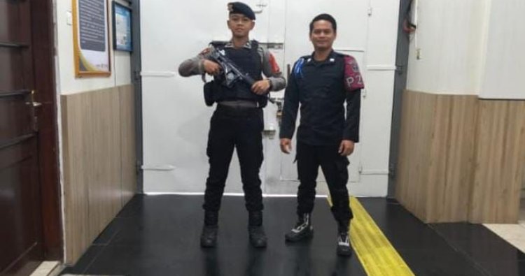 Terlihat Bripda Alfi Taufik Ilham Hidayat melakukan koordinasi bersama anggota Babinsa untuk melaksanakan pengamanan di area Lapas Kelas II B Ciamis. Anggota yang bertugas merupakan anggota Polri yang sehari-hari bertugas di Satuan Samapta Polres Ciamis Polda Jabar.