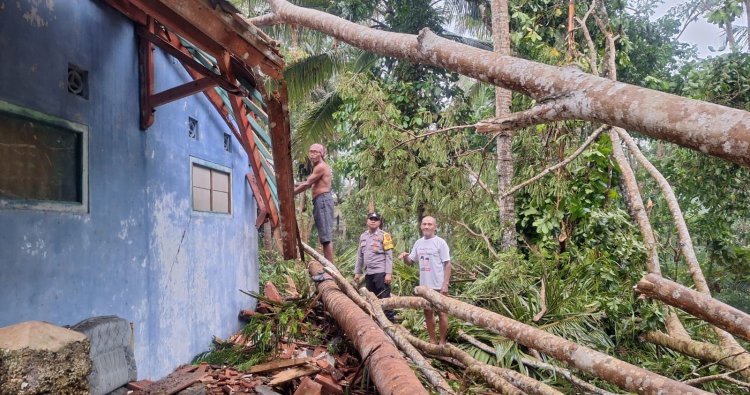 Mengetahui peristiw itu, Anggota Polsek Sukadana Polres Ciamis Polda Jabar bergegas mendatangi TKP setelah mendapatkan informasi dari masyarakat. Mereka hadir dan membantu proses penanggulangan bencana alam pohon tumbang menimpa bagian rumah warga.