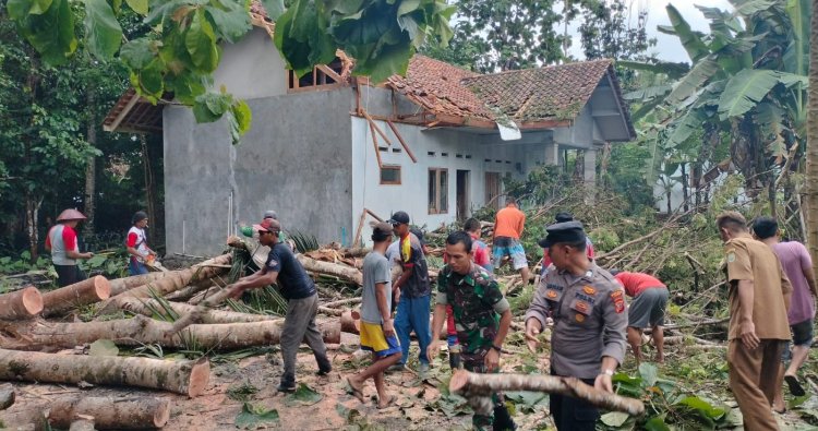 Mendapatkan laporan dari masyarakat, Panit II Binmas Aiptu Arman Bukhori, S.H., bersama Briptu Lutfi Aditya segera turun ke lokasi. Setibanya di tempat kejadian, petugas langsung mengecek kondisi bangunan, memastikan keselamatan penghuni rumah, serta mengumpulkan keterangan dari saksi, yaitu perangkat desa Ciulu dan Kadus Pangsor yang juga merupakan pemilik pohon yang tumbang. Polisi turut membantu warga membersihkan bagian rumah yang terdampak agar situasi kembali aman dan tidak menimbulkan risiko tambahan.