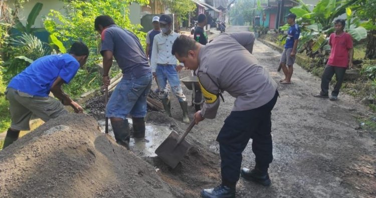 CIAMIS - Personel Polsek Cikoneng Polres Ciamis Polda Jabar melaksanakan sambang sekaligus membantu warga memperbaiki Jalan Dusun yang berlubang akibat cuaca ekstrim dan lama pemakaian. Kegiatan ini dilaksanakan di Jalan Dusun Colendra Rt 07 Rw 07, Desa Sindangsari, Kecamatan Cikoneng, Kabupaten Ciamis, Jawa Barat, Selasa (10/2/2026).