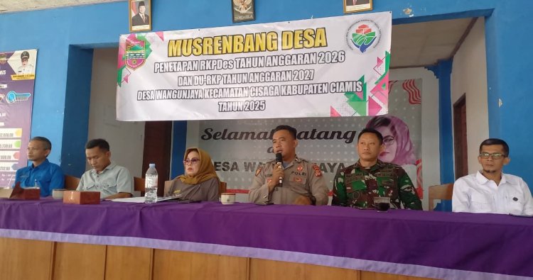 Ciamis – Kepolisian Resor Ciamis melalui Polsek Cisaga terus menunjukkan peran aktif dalam mendukung proses pembangunan di tingkat desa, salah satunya melalui pengamanan dan pengawasan kegiatan Musyawarah Rencana Pembangunan Desa (Musrenbangdes). Pada Jumat pagi, kegiatan Musrenbangdes Desa Wangunjaya Tahun Anggaran 2026 digelar di Aula Desa Wangunjaya dan berlangsung sejak pukul 08.00 WIB hingga selesai, Jumat (05/12/2025).