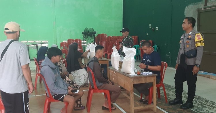 CIAMIS ~ Personel Polsek Kawali Polres Ciamis Polda Jabar melaksanakan pengamanan kegiatan penyaluran bantuan pangan berupa beras dan minyak goreng dari Pemerintah Pusat di Desa Lumbung. Pengamanan ini dilaksanakan di Aula Kantor Desa Lumbung, Kecamatan Lumbung, Kabupaten Ciamis, Jawa Barat, Rabu (17/12/2025).