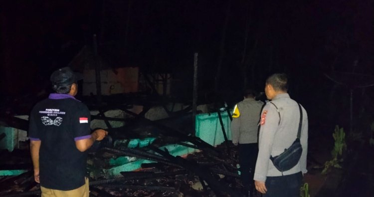 CIAMIS ~ Personel Polsek Kawali Polres Ciamis Polda Jawa Barat mendatangi lokasi kejadian kebakaran sebuah rumah warga di wilayah Desa Karangpawitan. Lokasi kebakaran ini berada di Dusun Lingtungpaku RT. 004 RW. 014, Desa Karangpawitan, Kecamatan Kawali, Kabupaten Ciamis, Jawa Barat, Selasa, 20 Januati 2026, malam.