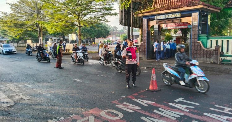 Ciamis – Kepolisian Resor Ciamis melalui Polsek Kawali terus memperkuat pelayanan publik, khususnya pada jam-jam sibuk di pagi hari. Sebagai bentuk kehadiran negara dalam menjaga keamanan dan kelancaran mobilitas warga, Polsek Kawali melaksanakan kegiatan Gatur Lalu Lintas atau Strong Point pagi di sejumlah titik rawan kepadatan, termasuk kawasan sekolah dan pusat aktivitas masyarakat. Kegiatan ini berlangsung di depan Mako Polsek Kawali, depan SDN 1 Kawali, dan depan SMPN 1 Kawali mulai pukul 06.15 WIB, Rabu (03/12/2025).