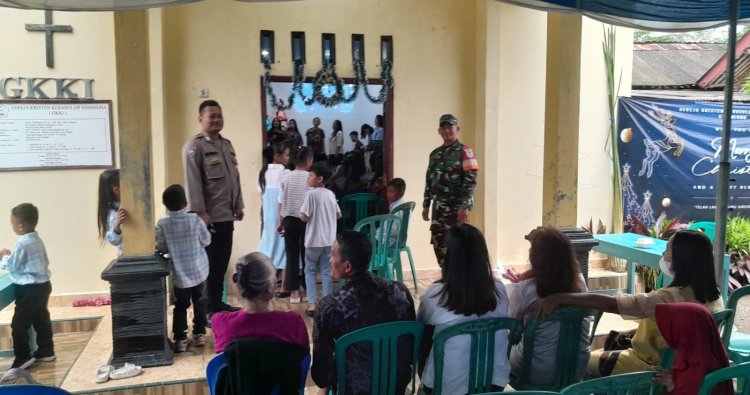 CIAMIS ~ Momen kegiatan peryaaan di Natal 2025, Polres Ciamis Polda Jabar bersiaga melaksanakan pengamanan. Salah satunya dilakukan di Gereja Kristen Kerosulan Indonesia (GKKI), Dusun Citamiang Rt.012 Rw.003 Desa Cintaratu Kecamatan Lakbok, Kabupaten Ciamis, Jawa Barat, Sabtu, 27 Desember 2025, malam.