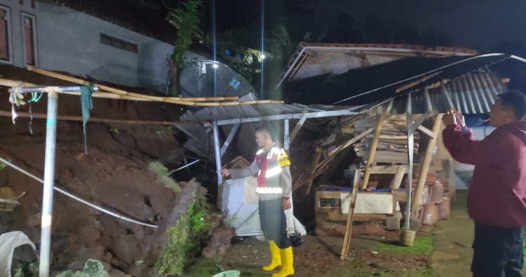 "Diduga akibat curah hujan yang tinggi disertai angin disekitar lokasi kejadian sehingga mengakibatkan tebing yang berada dibelakang rumah setinggi 4 meter longsor menghantam bangunan rumah korban. Sehingga merusak dinding dapur rumah. Diperkirakan korban mengalami kerugian materiil karena dapur yang tertimbun rreruntuhan longsoran tanah sekitar Rp. 15 juta, " kata AKP Yaya Koswara.