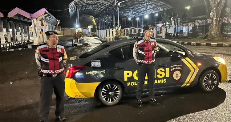 CIAMIS ~ Unit Patroli Sat Samapta Polres Ciamis Polda Jabar melaksanakan Patroli Biru di wilayah rawan tindak kriminalitas dan balapan liar di Kabupaten Ciamis. Patroli ini dilaksanakan di kawasan Jalan Raya Terminal Ciamis, Ciamis, Kabupaten Ciamis, Jawa Barat, Jumat, 7 November 2025, malam.