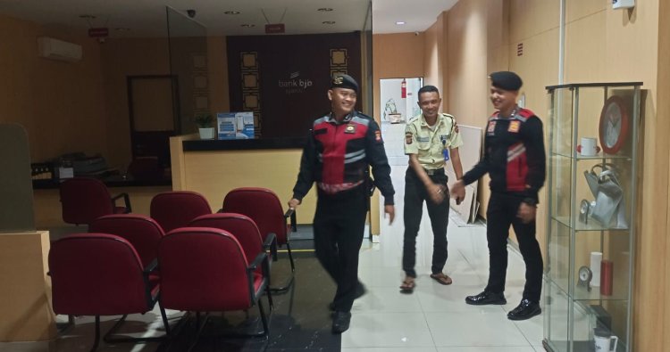 CIAMIS ~ Personel Satuan Samapta Polres Ciamis Polda Jabar melaksanakan koordinasi sekaligus pembinaan ke satuan keamanan (Satpam) perbankan. Pembinaan ini dilaksanakan ke Anggota Satpam Bank BJB Ciamis, Kecamatan Ciamis, Kabupaten Ciamis, Jawa Barat, Minggu (19/10/2025), dini hari.